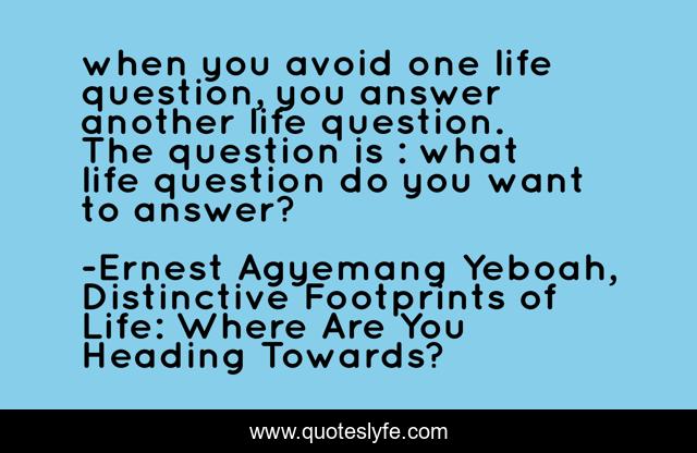 "Ernest Agyemang Yeboah, Distinctive Footprints of Life: Where Are You Heading Towards? Quotes." Quoteslyfe.com, 2025. Fri. 05 Dec. 2025. <https://www.quoteslyfe.com/quote/when-you-avoid-one-life-question-you-213477>.