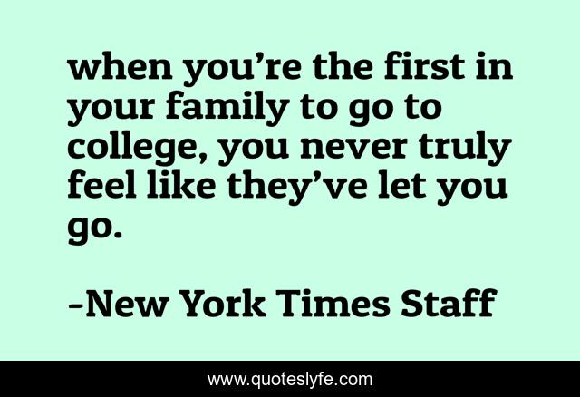 This page presents the quote "when you’re the first in your family to go to college, you never truly feel like they’ve let you go.". Author of this quote is New York Times Staff. This quote is about maturation, education,.