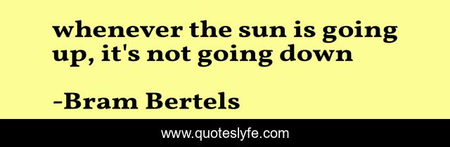 This page presents the quote "whenever the sun is going up, it's not going down". Author of this quote is Bram Bertels. .