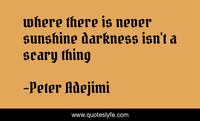 This page presents the quote "where there is never sunshine darkness isn't a scary thing". Author of this quote is Peter Adejimi. This quote is about fear, darkness, inspiration,.