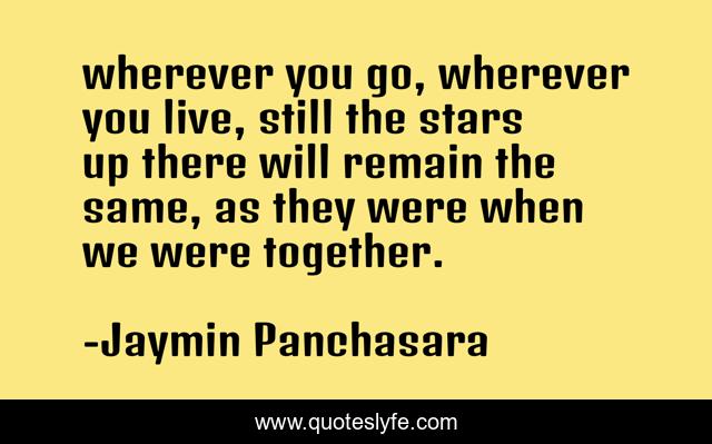 This page presents the quote "wherever you go, wherever you live, still the stars up there will remain the same, as they were when we were together.". Author of this quote is Jaymin Panchasara. This quote is about life, stars,.