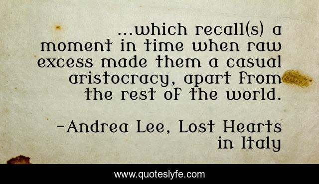 This page presents the quote "...which recall(s) a moment in time when raw excess made them a casual aristocracy, apart from the rest of the world.". Author of this quote is Andrea Lee, Lost Hearts in Italy. .