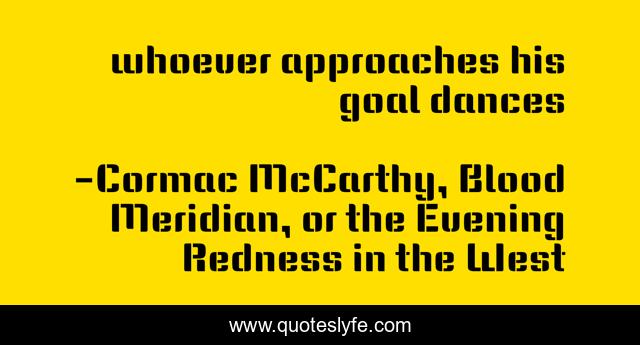 "Cormac McCarthy, Blood Meridian, or the Evening Redness in the West Quotes." Quoteslyfe.com, 2025. Tue. 09 Dec. 2025. <https://www.quoteslyfe.com/quote/whoever-approaches-his-goal-dances-67212>.