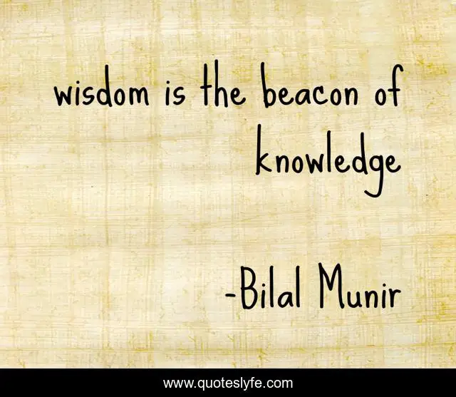 This page presents the quote "wisdom is the beacon of knowledge". Author of this quote is Bilal Munir. This quote is about light, wisdom,.