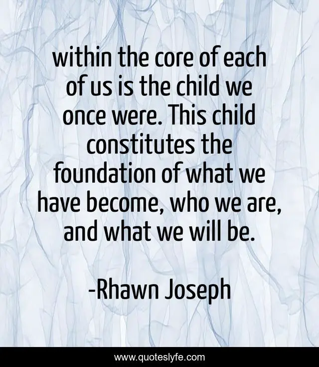 This page presents the quote "within the core of each of us is the child we once were. This child constitutes the foundation of what we have become, who we are, and what we will be.". Author of this quote is Rhawn Joseph. This quote is about dr-r-jospeh, children,.