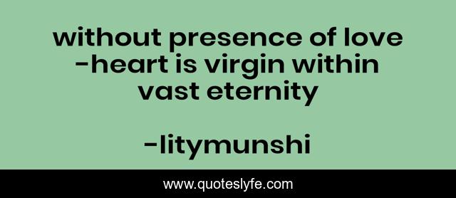 This page presents the quote "without presence of love -heart is virgin within vast eternity". Author of this quote is litymunshi. This quote is about heart, love, affection, presence,.