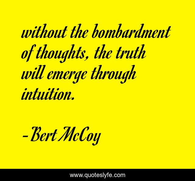 This page presents the quote "without the bombardment of thoughts, the truth will emerge through intuition.". Author of this quote is Bert McCoy. This quote is about the-now, intuition, love, presence, peace, wisdom, awareness, truth, meditation,.