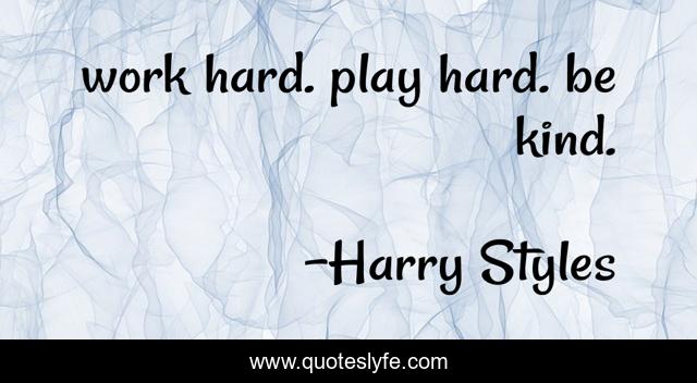 This page presents the quote "work hard. play hard. be kind.". Author of this quote is Harry Styles. .