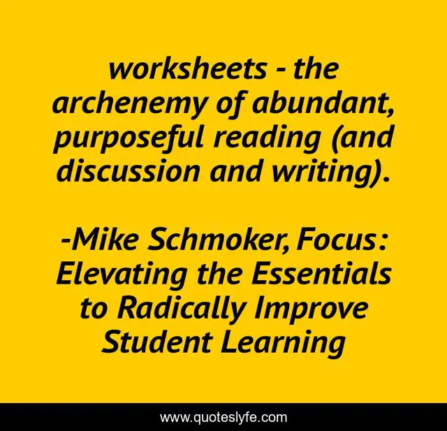 "Mike Schmoker, Focus: Elevating the Essentials to Radically Improve Student Learning Quotes." Quoteslyfe.com, 2025. Fri. 05 Dec. 2025. <https://www.quoteslyfe.com/quote/worksheets-the-archenemy-of-abundant-purposeful-reading-117575>.