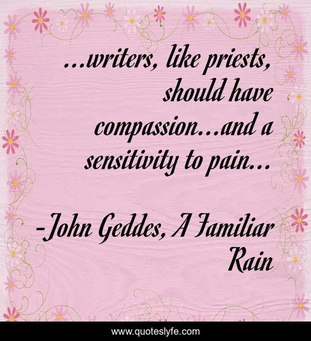 "John Geddes, A Familiar Rain Quotes." Quoteslyfe.com, 2025. Fri. 05 Dec. 2025. <https://www.quoteslyfe.com/quote/writers-like-priests-should-have-compassion-and-135470>.