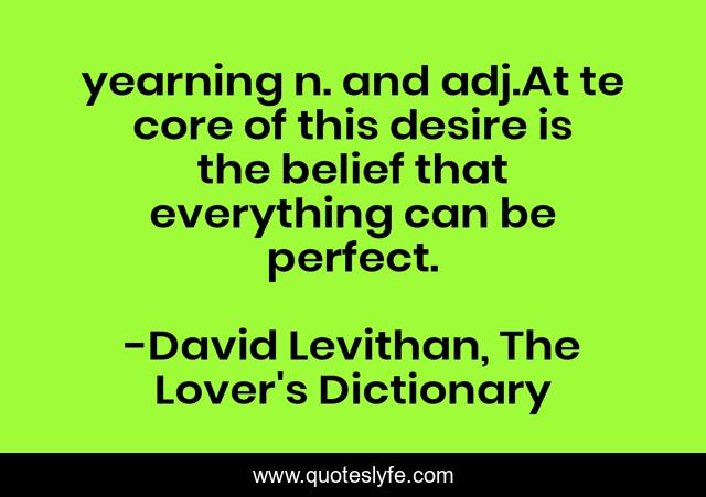 This page presents the quote "yearning n. and adj.At te core of this desire is the belief that everything can be perfect.". Author of this quote is David Levithan, The Lover's Dictionary. This quote is about love, perfection, affection,.