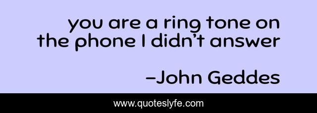 This page presents the quote "you are a ring tone on the phone I didn’t answer". Author of this quote is John Geddes. This quote is about jilted, solitude, love, affection, despair,.