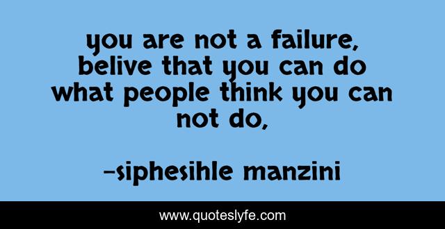 This page presents the quote "you are not a failure, belive that you can do what people think you can not do, ". Author of this quote is siphesihle manzini. This quote is about confidence, positive, motivational, failure, optimistic, believe,.