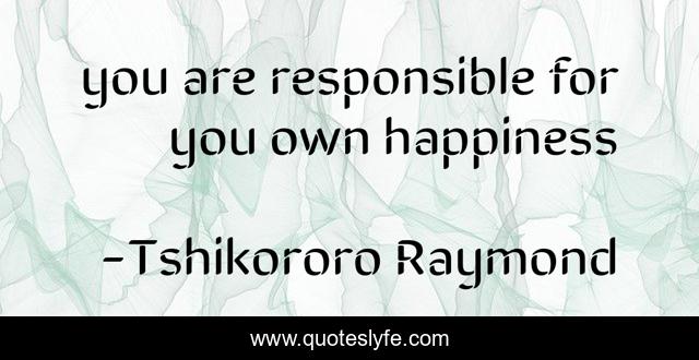 "Tshikororo Raymond Quotes." Quoteslyfe.com, 2025. Mon. 08 Dec. 2025. <https://www.quoteslyfe.com/quote/you-are-responsible-for-you-own-happiness-130821>.