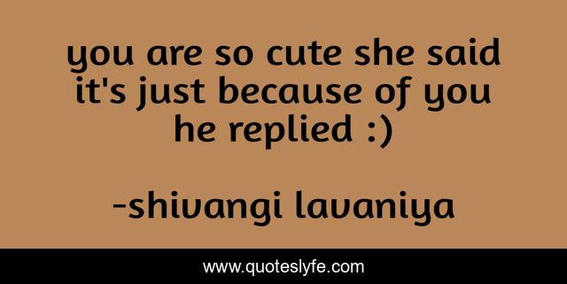 This page presents the quote "you are so cute she said it's just because of you he replied :)". Author of this quote is shivangi lavaniya. This quote is about romance, cute, love, affection,.