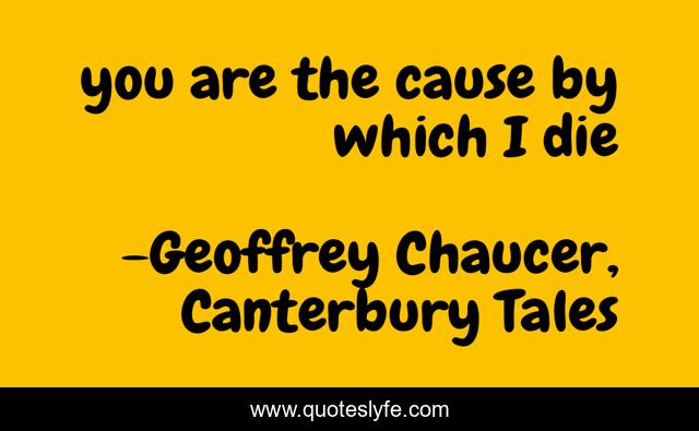 This page presents the quote "you are the cause by which I die". Author of this quote is Geoffrey Chaucer, Canterbury Tales. This quote is about reason, death, cause, catalyst, means,.