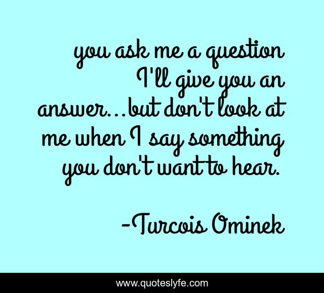 "Turcois Ominek Quotes." Quoteslyfe.com, 2025. Sat. 06 Dec. 2025. <https://www.quoteslyfe.com/quote/you-ask-me-a-question-I-ll-141923>.