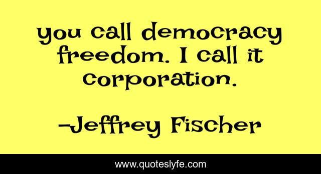 This page presents the quote "you call democracy freedom. I call it corporation.". Author of this quote is Jeffrey Fischer. This quote is about marxism, democracy,.
