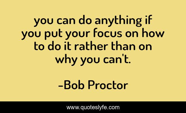 This page presents the quote "you can do anything if you put your focus on how to do it rather than on why you can't.". Author of this quote is Bob Proctor. .