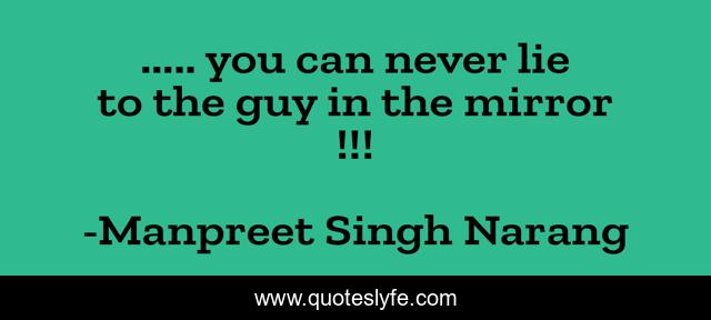 This page presents the quote "..... you can never lie to the guy in the mirror !!!". Author of this quote is Manpreet Singh Narang. This quote is about realisation, life-experience, truth,.