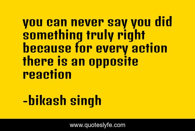 This page presents the quote "you can never say you did something truly right because for every action there is an opposite reaction". Author of this quote is bikash singh. .