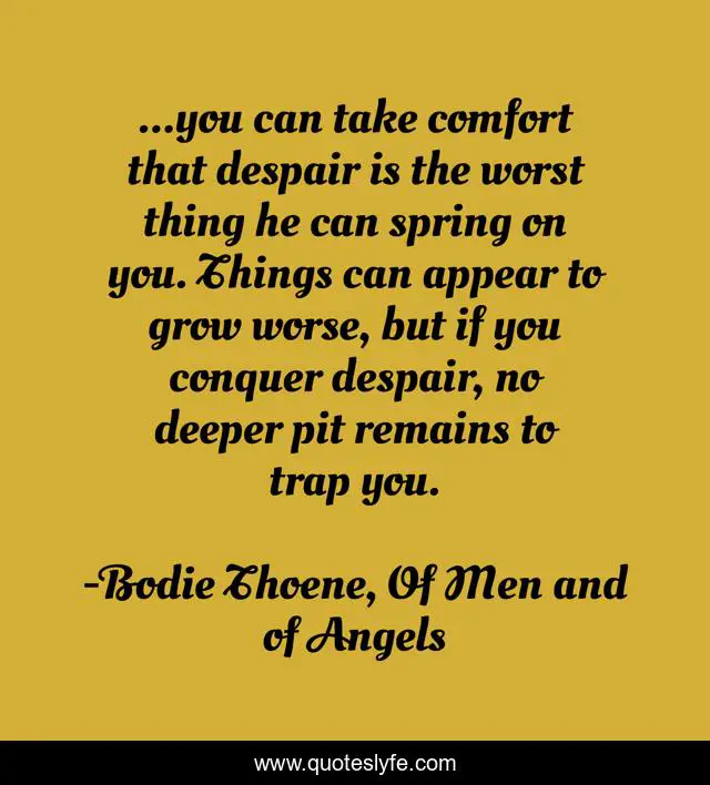 "Bodie Thoene, Of Men and of Angels Quotes." Quoteslyfe.com, 2025. Fri. 05 Dec. 2025. <https://www.quoteslyfe.com/quote/you-can-take-comfort-that-despair-is-207864>.
