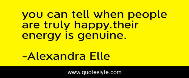 This page presents the quote "you can tell when people are truly happy.their energy is genuine.". Author of this quote is Alexandra Elle. This quote is about alex-elle, energy, happiness,.