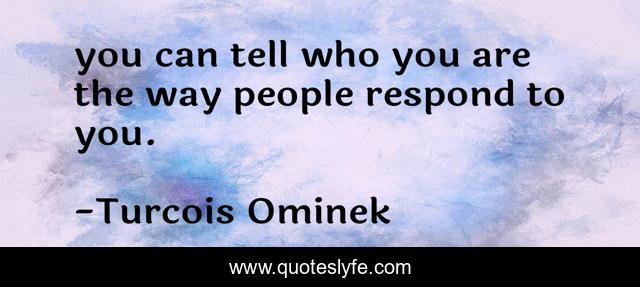 This page presents the quote "you can tell who you are the way people respond to you.". Author of this quote is Turcois Ominek. This quote is about self, self-help, self-awareness, honesty, self-honesty,.
