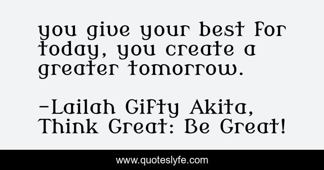 "Lailah Gifty Akita, Think Great: Be Great! Quotes." Quoteslyfe.com, 2025. Tue. 09 Dec. 2025. <https://www.quoteslyfe.com/quote/you-give-your-best-for-today-you-34654>.