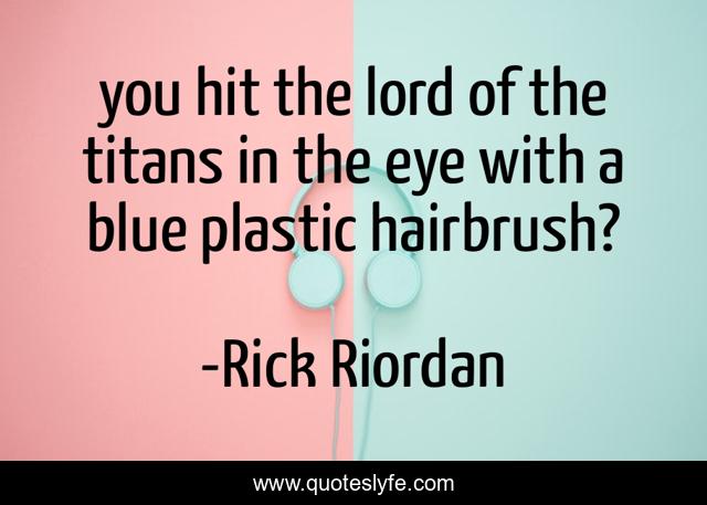 This page presents the quote "you hit the lord of the titans in the eye with a blue plastic hairbrush?". Author of this quote is Rick Riordan. .
