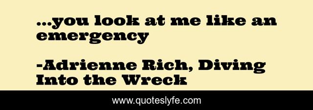 This page presents the quote "...you look at me like an emergency". Author of this quote is Adrienne Rich, Diving Into the Wreck. .