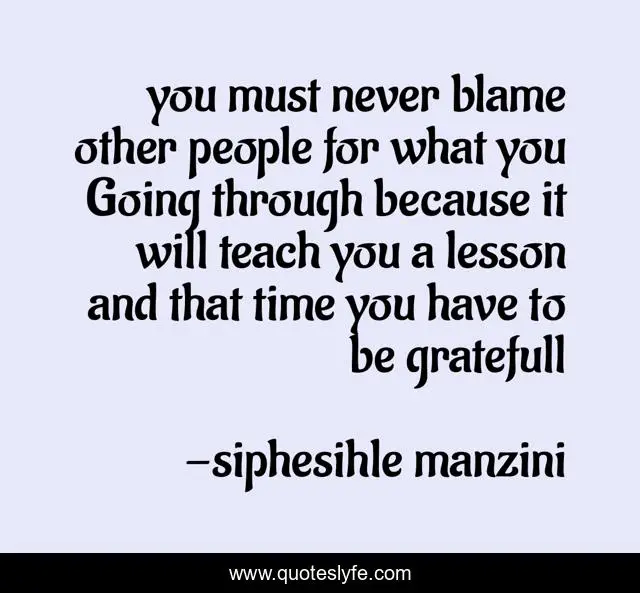 This page presents the quote "you must never blame other people for what you Going through because it will teach you a lesson and that time you have to be gratefull". Author of this quote is siphesihle manzini. This quote is about life-lesson, suffering, hardship, endured-hardships,.
