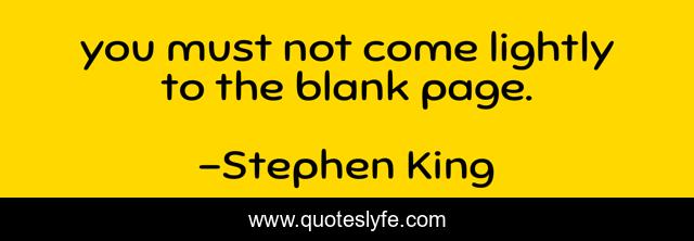 This page presents the quote "you must not come lightly to the blank page.". Author of this quote is Stephen King. .