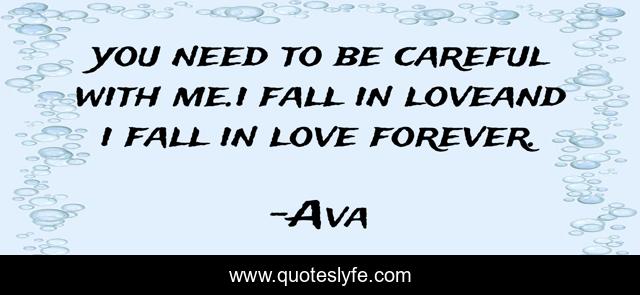 This page presents the quote "you need to be careful with me.i fall in loveand i fall in love forever.". Author of this quote is Ava. This quote is about falling-in-love, love, human-nature, poetry, quotes, human, prose, poems, fall-in-love,.
