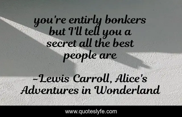 This page presents the quote "you're entirly bonkers but I'll tell you a secret all the best people are". Author of this quote is Lewis Carroll, Alice's Adventures in Wonderland. .
