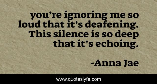 This page presents the quote "you’re ignoring me so loud that it’s deafening. This silence is so deep that it’s echoing.". Author of this quote is Anna Jae. This quote is about ignored, loneliness, silence,.