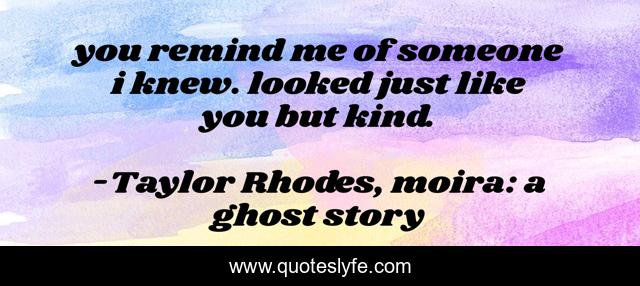 This page presents the quote "you remind me of someone i knew. looked just like you but kind.". Author of this quote is Taylor Rhodes, moira: a ghost story. This quote is about love, rememberance, poetry, abuse, prose, affection,.