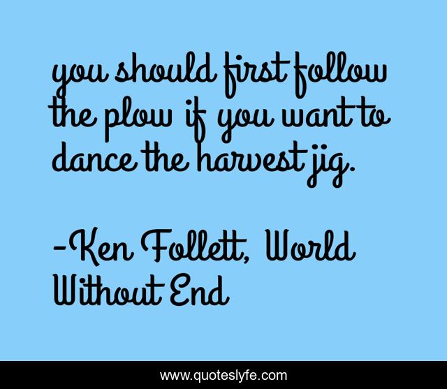This page presents the quote "you should first follow the plow if you want to dance the harvest jig.". Author of this quote is Ken Follett, World Without End. .