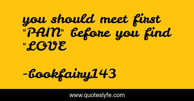This page presents the quote "you should meet first "PAIN" before you find "LOVE". Author of this quote is bookfairy143. This quote is about pain, strong-woman, love-hurts,.