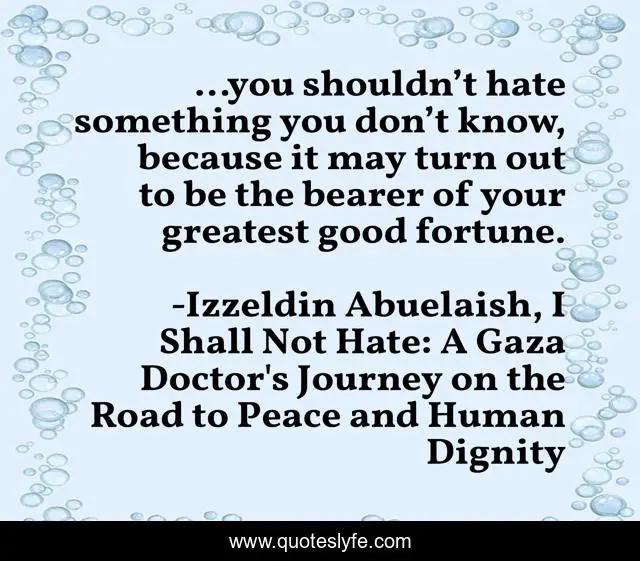 "Izzeldin Abuelaish, I Shall Not Hate: A Gaza Doctor's Journey on the Road to Peace and Human Dignity Quotes." Quoteslyfe.com, 2025. Sat. 06 Dec. 2025. <https://www.quoteslyfe.com/quote/you-shouldn-t-hate-something-you-don-172172>.