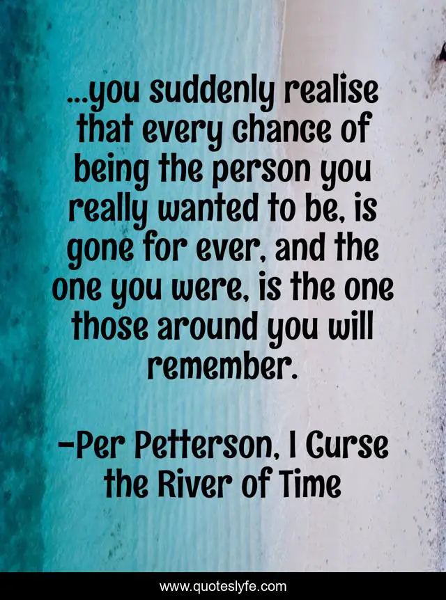 This page presents the quote "...you suddenly realise that every chance of being the person you really wanted to be, is gone for ever, and the one you were, is the one those around you will remember.". Author of this quote is Per Petterson, I Curse the River of Time. .