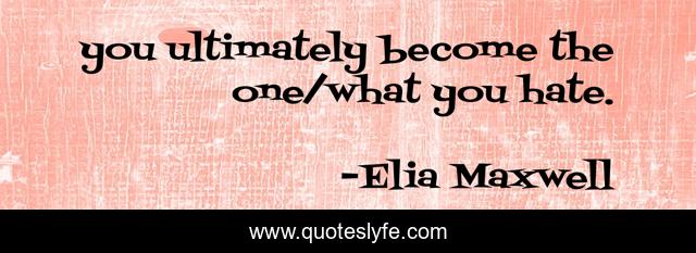This page presents the quote "you ultimately become the one/what you hate.". Author of this quote is Elia Maxwell. This quote is about depressing, future, truth,.