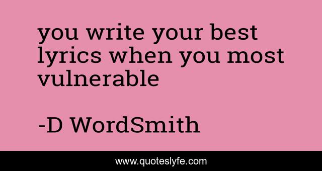 This page presents the quote "you write your best lyrics when you most vulnerable". Author of this quote is D WordSmith. This quote is about art, music, lyrics,.