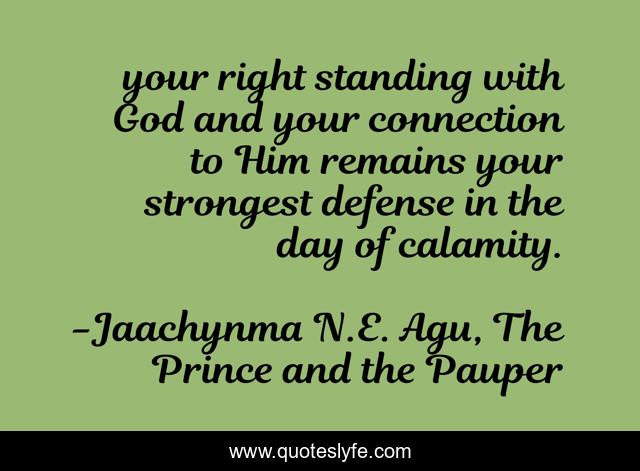 "Jaachynma N.E. Agu, The Prince and the Pauper Quotes." Quoteslyfe.com, 2025. Sat. 06 Dec. 2025. <https://www.quoteslyfe.com/quote/your-right-standing-with-God-and-your-32418>.