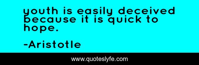 This page presents the quote "youth is easily deceived because it is quick to hope.". Author of this quote is Aristotle. This quote is about deceit, gullibility, youth, hope, wisdom,.